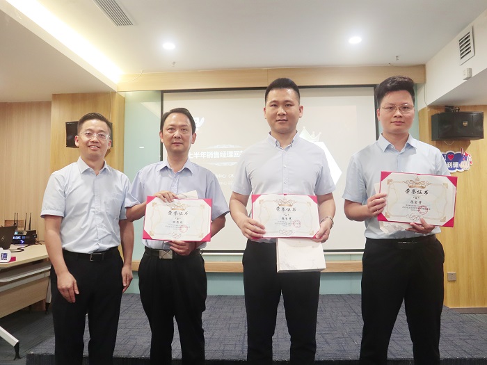 期間,還對(duì)上半年工作表現(xiàn)優(yōu)異、有突出貢獻(xiàn)的團(tuán)隊(duì)和個(gè)人進(jìn)行了表彰,并頒發(fā)了獎(jiǎng)杯和榮譽(yù)證書。同時(shí),現(xiàn)場(chǎng)播放了家屬錄制的暖心視頻,滿滿的關(guān)心和感動(dòng)讓常年在外奔波的銷售精英們感受到了久違的家庭溫暖。